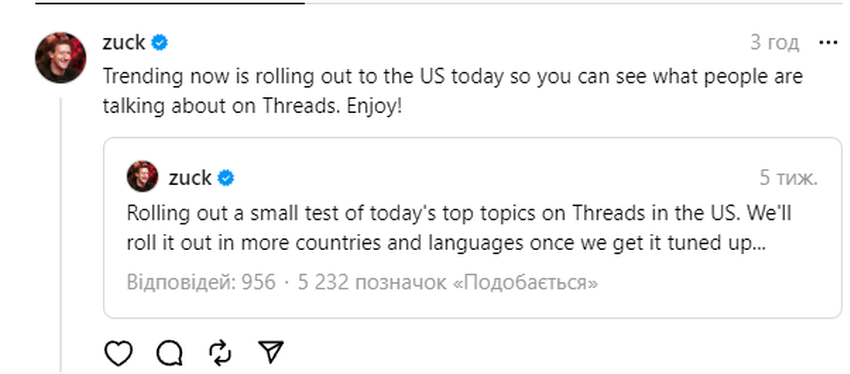 Threads uruchamia funkcję "trending now" dla wszystkich użytkowników w USA.