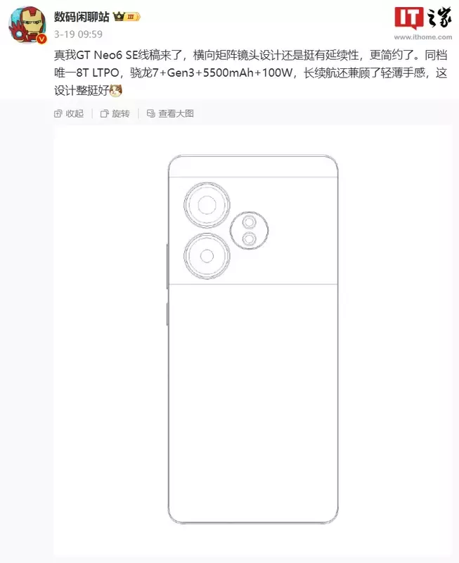 Niedawno w Internecie opublikowano również obraz z informatora Digital Chat Station, przedstawiający szkic nadchodzącego GT Neo 6 SE. Ten szkic smartfona jest całkowicie podobny pod względem konstrukcji do rzekomego GT Neo 6 SE pokazanego na zdjęciu. Informator powiedział również, że urządzenie będzie lekkie i cienkie, co widać również na zdjęciu.