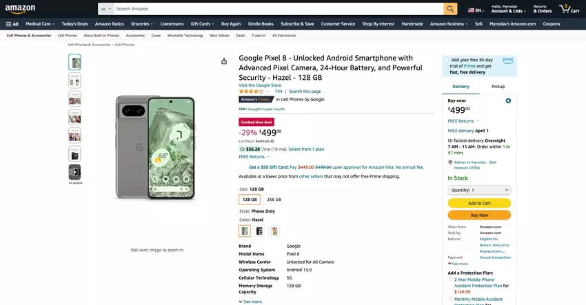 - Pixel 8, 128GB (Hazel, Obsidian, Rose) - $589.97 $699.00, -16%,00 USD $589.97 $699.00, -16%.