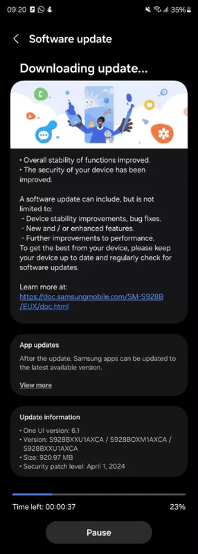 System został wydany z numerem kompilacji S92xBXXU1AXCA i może być już zainstalowany przez niektórych właścicieli Galaxy S24, Galaxy S24+ i Galaxy S24 Ultra w Europie.