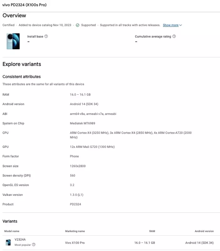 Ten sam chipset został znaleziony w bazie danych Konsoli Google Play dla Vivo X100s. Oznacza to, że oba telefony mogą być zasilane przez ten sam chipset, ale będą inne różnice między tymi dwoma urządzeniami.