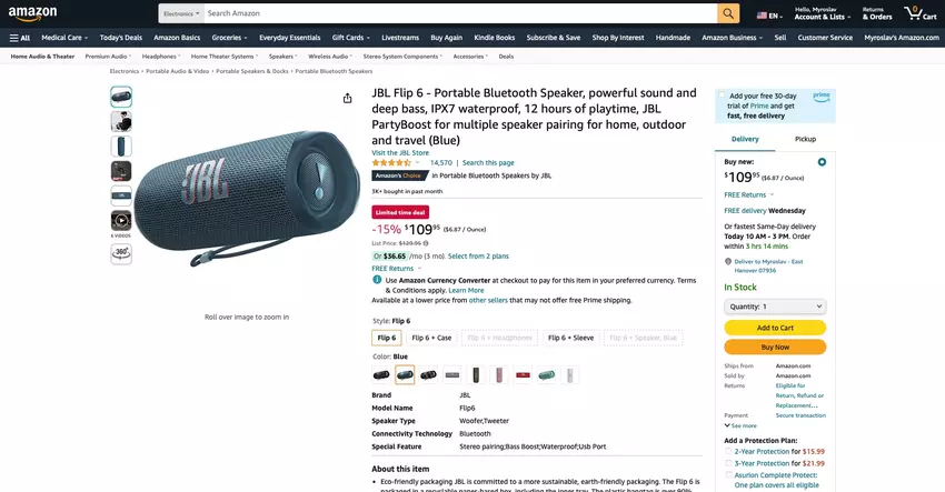 Oferta ograniczona czasowo: JBL Flip 6 ze stopniem ochrony IP67 i do 12 godzin pracy na baterii jest dostępny na Amazon z rabatem w wysokości 20 USD