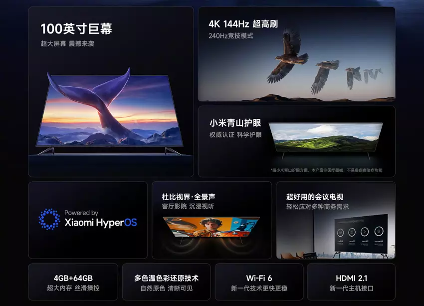 Xiaomi zaprezentowało 100-calowy telewizor Redmi MAX z ekranem 144 Hz i systemem HyperOS.