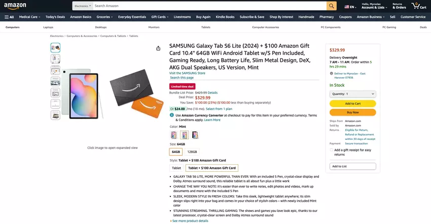 Amazon oferuje kartę podarunkową o wartości 100 USD przy zakupie tabletu Samsung Galaxy Tab S6 Lite (2024)