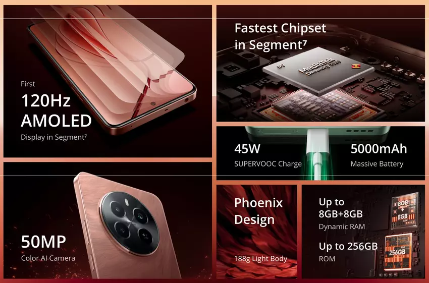 Realme P1 5G: wyświetlacz OLED 120 Hz, układ MediaTek Dimensity 7050, stopień ochrony IP54 i bateria 5000 mAh z ładowaniem 45 W w cenie od 190 USD