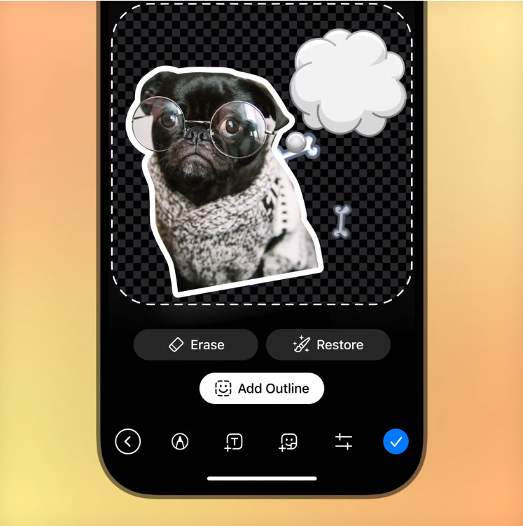 Nowy edytor naklejek pozwala użytkownikom tworzyć naklejki i zestawy naklejek bez konieczności opuszczania aplikacji. Wystarczy zrobić zdjęcie i dodać tekst, rysunki, animowane naklejki, emoji i GIF-y, które są już dostępne w aplikacji.