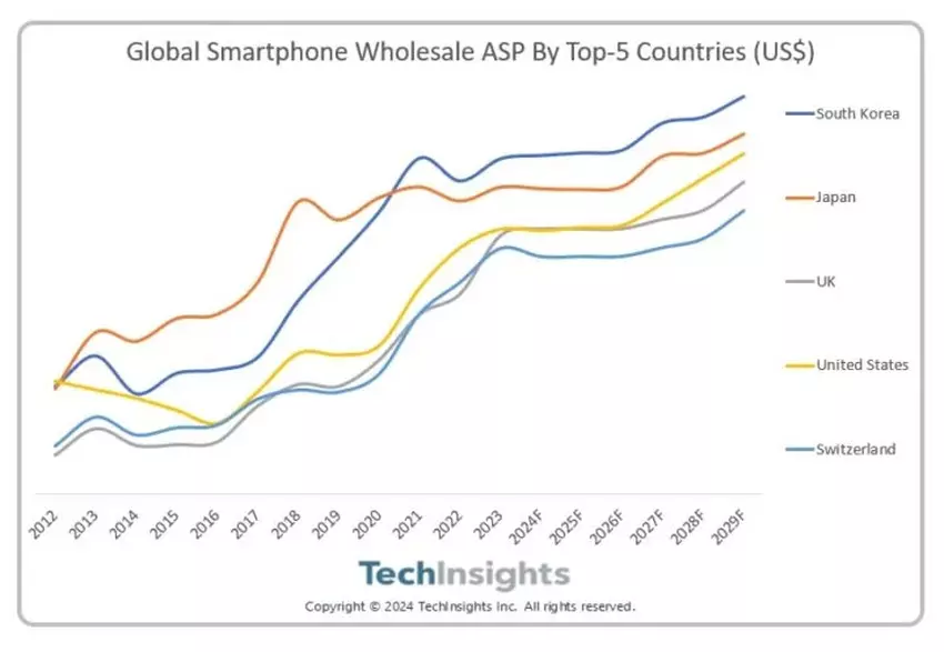 Korea Południowa, wraz z Japonią i Stanami Zjednoczonymi, znajduje się w pierwszej trójce krajów o najwyższej średniej cenie sprzedaży (ASP) smartfonów. Wysoka popularność składanych telefonów Samsung Galaxy Flip i Fold przyczyniła się do wzrostu średniej ceny sprzedaży w Korei Południowej.