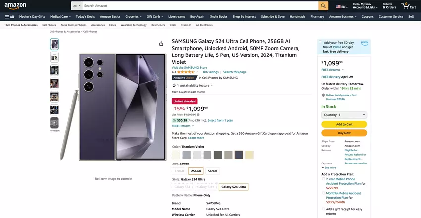 Oferta ograniczona czasowo: Samsung Galaxy S24 Ultra na Amazon ze zniżką 200 USD
