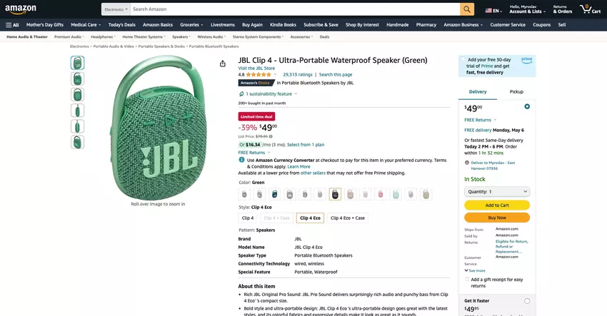Oferta ograniczona czasowo: JBL Clip 4 na Amazon za 49 USD (39% taniej)
