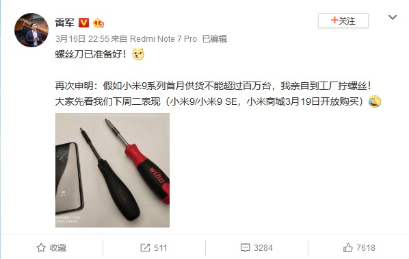 Przewodniczący Xiaomi Lei Jun (Lei Jun) w mediach społecznościowych napisał, że sprzedaż Mi 9 i uproszczonej wersji Mi 9 SE będą wznowione już pojutrze, 19 marca. Ale kiedy do sklepów wróci starszy model Mi 9 Transparent / Explorer Edition - kierownik spółki nie powiedział.