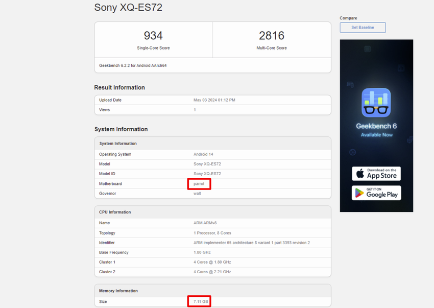 W oczekiwaniu na odsłonięcie nowej linii smartfonów Sony 2024, w tym modeli Xperia 1 VI, Xperia 5 VI i Xperia 10 VI, z których ten ostatni został zauważony w Geekbench pod nazwą kodową "parrot".