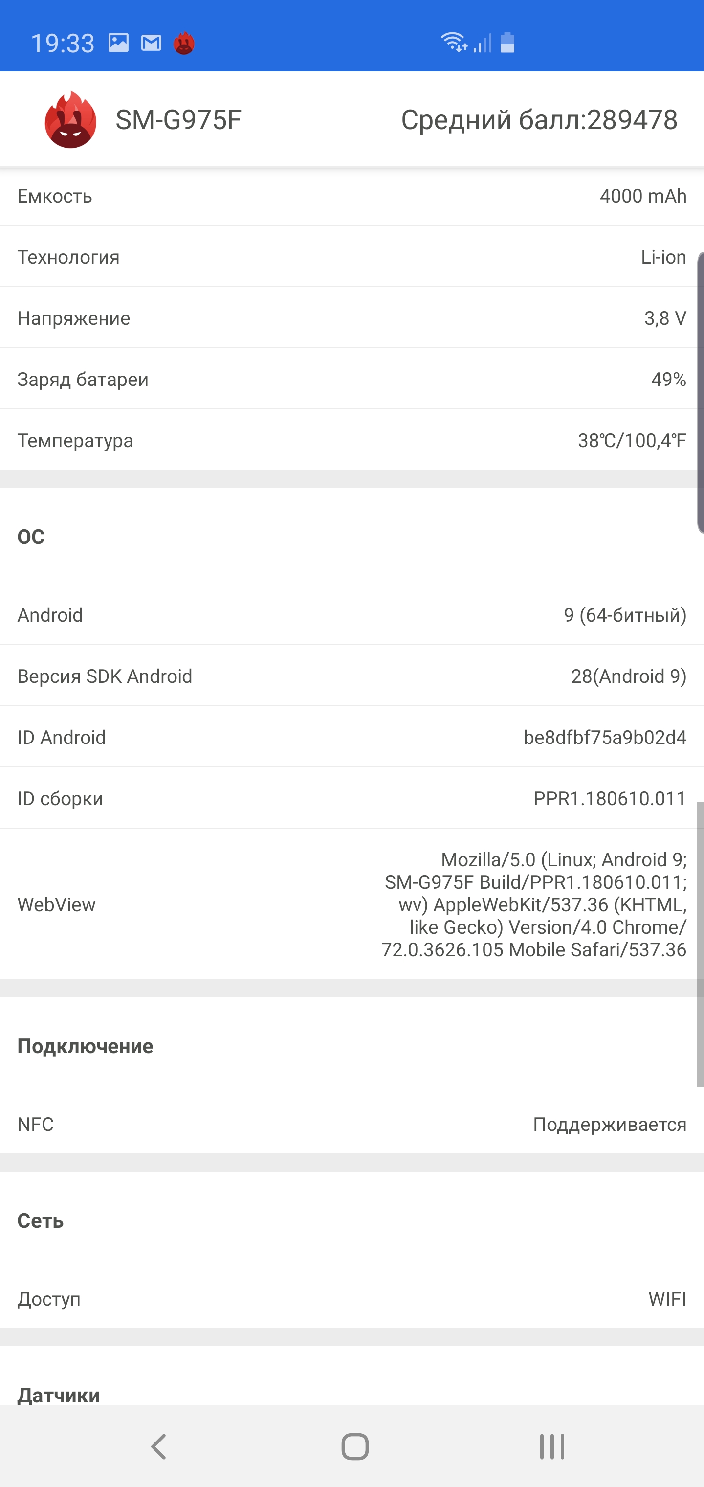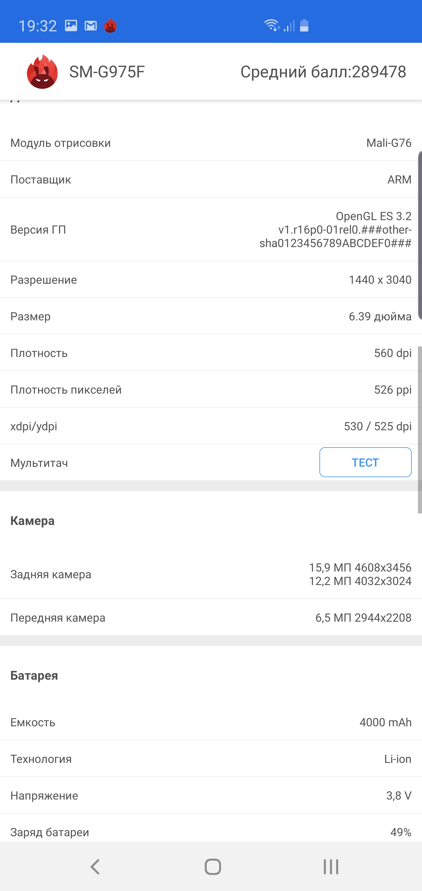 | Samsung Galaxy S10 + | 397816 | 0 | ∞ |