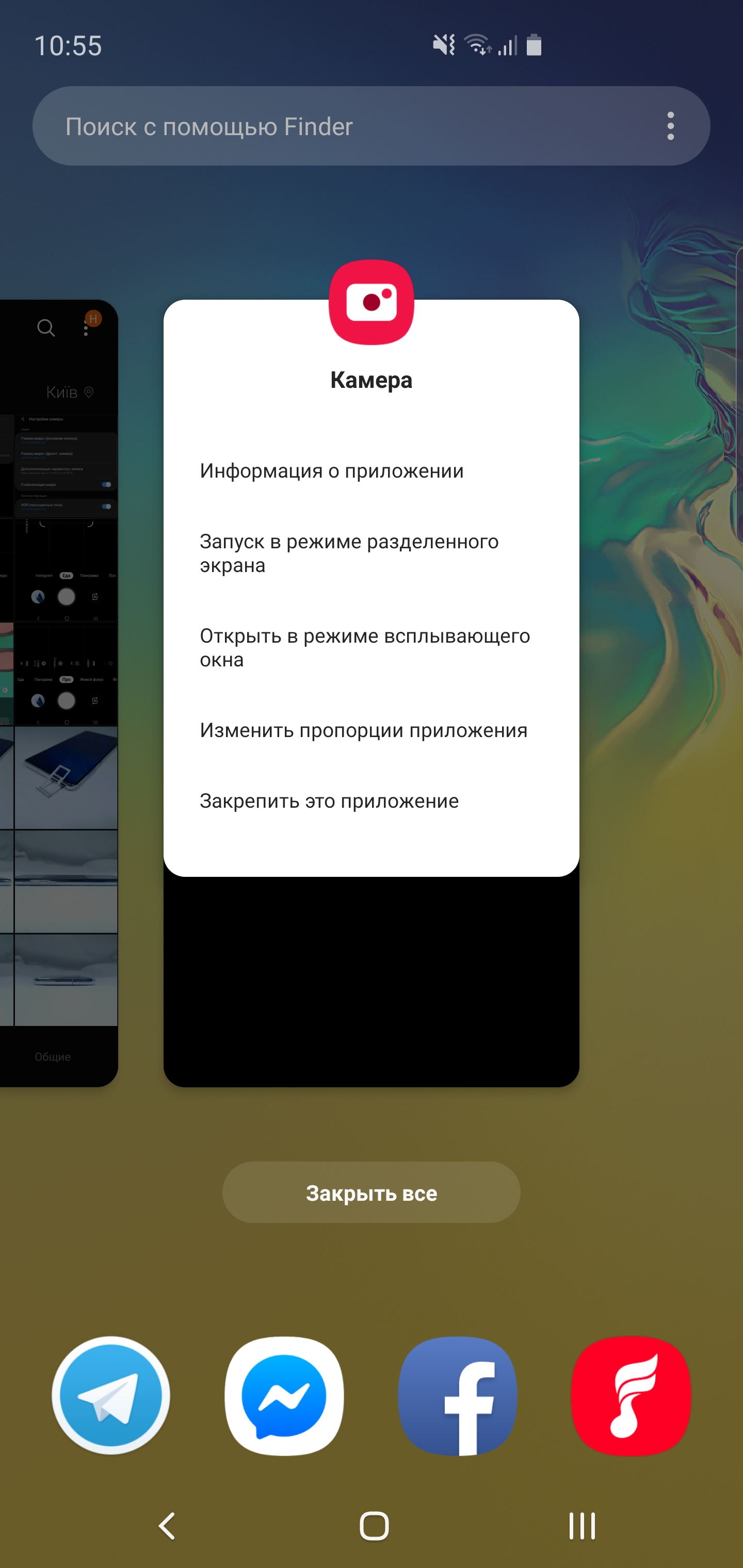 Applications Manager wygląda teraz podobnym do magazynowego od Android 9 Pie: poziomowa karuzeli dużych kart z ikonkami na górze, długim tapem, na które można przełączać w dwa okna. Ale Samsung lekko rozszerzył funkcje: aplikacje można redukować do różnej wielkości okna i regulować przejrzystość lub zwinąć do zaokrąglonej ikony: