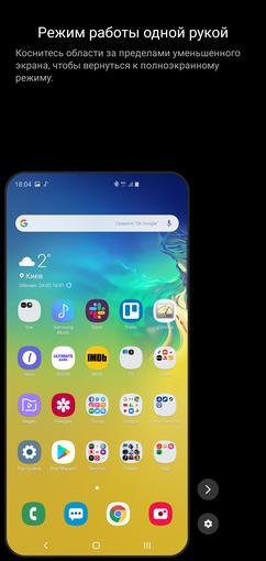 Samsung Galaxy S10 + działa na OS Android 9 Pie z nową powłoką One UI, która już zdążyła się dostać do wersji 1.1. Zastąpiła Samsung Experience. Na początek o oczywistych zmianach: wizualnie bardzo znacznie odświeżona. Inne ikony nieznacznie różni się ogulny design. Niektóre elementy interfejsu wyrosły, niektóre - wręcz przeciwnie zmniejszyły się. Pojawiło się wiele małych możliwości, które okazały się niezwykle przydatne przy kontakcie z dużym smartfonem jedną ręką. Przede wszystkim dotyczy to przemieszczenią wszystkich elementów funkcjonalnych w dolną część ekranu w zasłonce, menu i aplikacjach. Na przykład, po włączeniu w ustawieniach możemy zobaczyć, że pierwszy punkt jest przesunięty bliżej środka ekranu tak by można było dotrzeć do niego bez konieczności podłączania drugiej ręki. Pojawił się tryb nocny. Innymi słowy, czarny motyw design, który odnosi się do całego systemu, a nie do poszczególnych aplikacji: