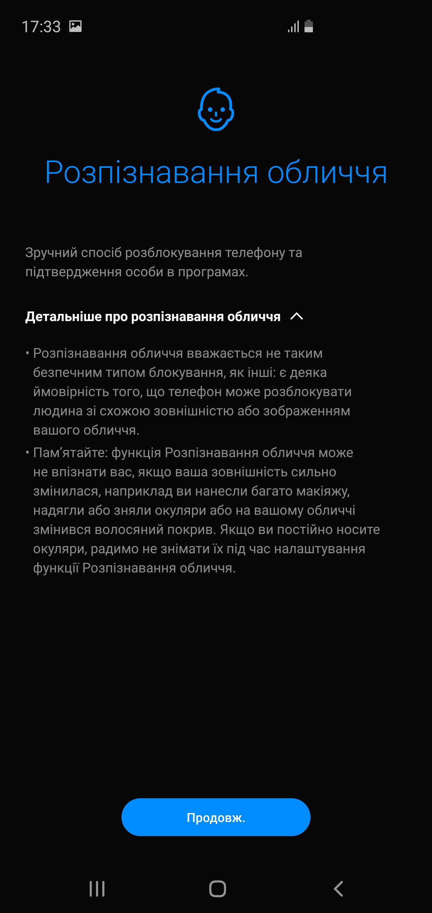 Odblokowanie za pomocą twarzy właściciela realizowana siłami przedniej kamery bez środków pomocniczych, takich jak czujnik podczerwieni. Tak, że wiarygodność tej metody jest niska, o czym producent mówi podczas instalacji. Ponadto w sieci już jest informacja i wideo z odblokowaniem za pomocą zdjęcia / wideo. Tak, że wdrożenie bardziej formalne niż praktyczne. Ustawienie tego wszystkiego realizowane jest dość standardowo, bez cech szczególnych.