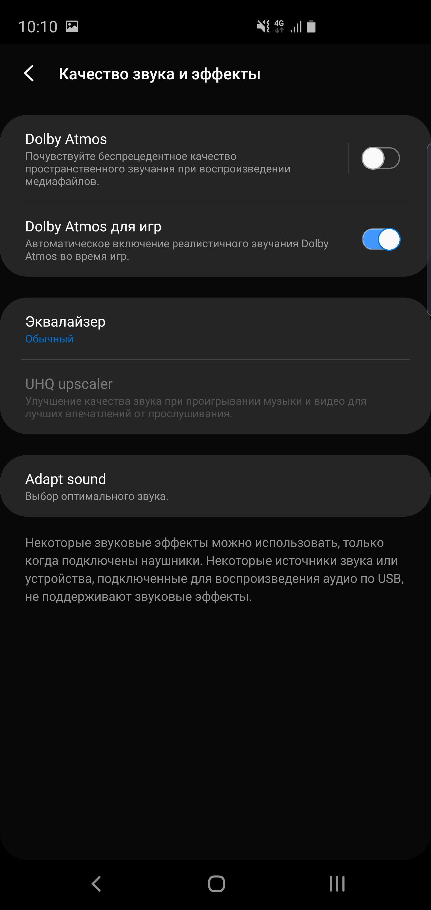 Rodzimy gracz zmieniła się nieco od poprzednich smartfonów: jest korektor, uluchshayzery, Dolby Atmos, i tak dalej: