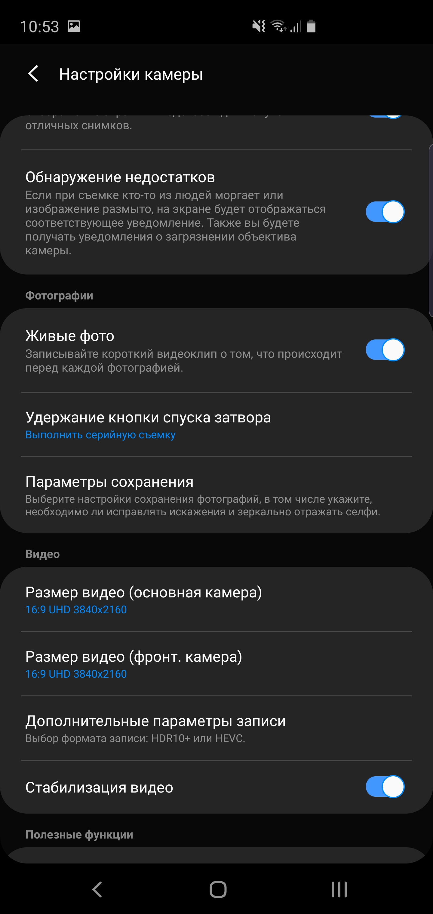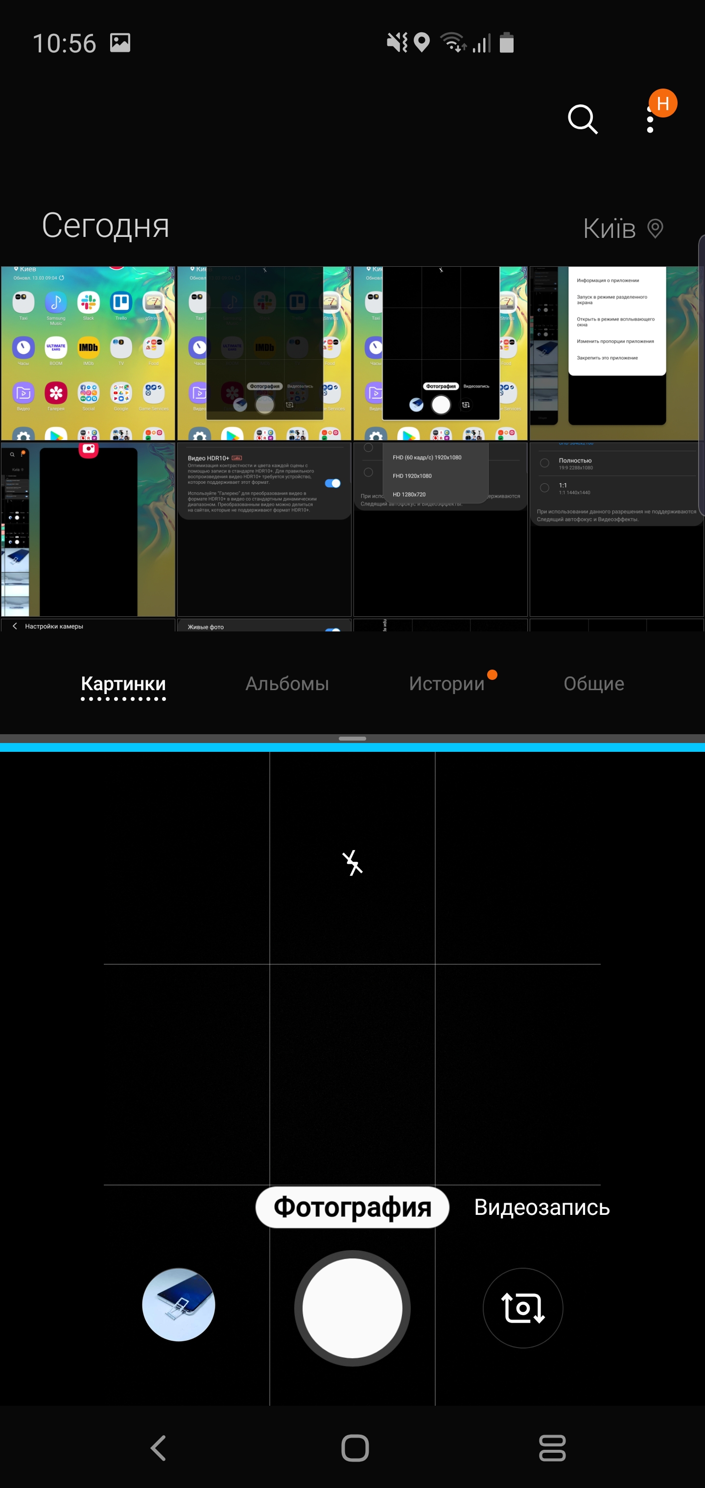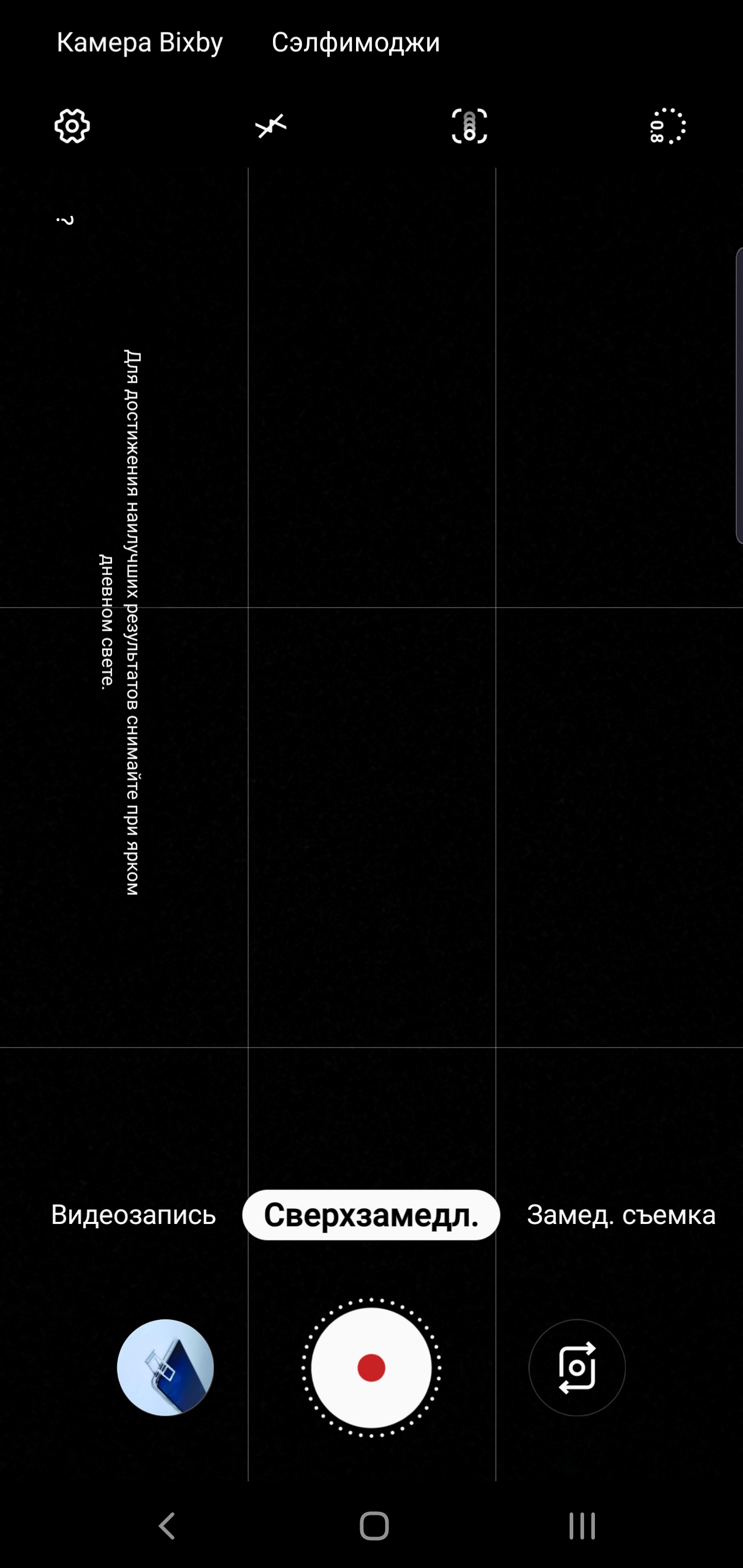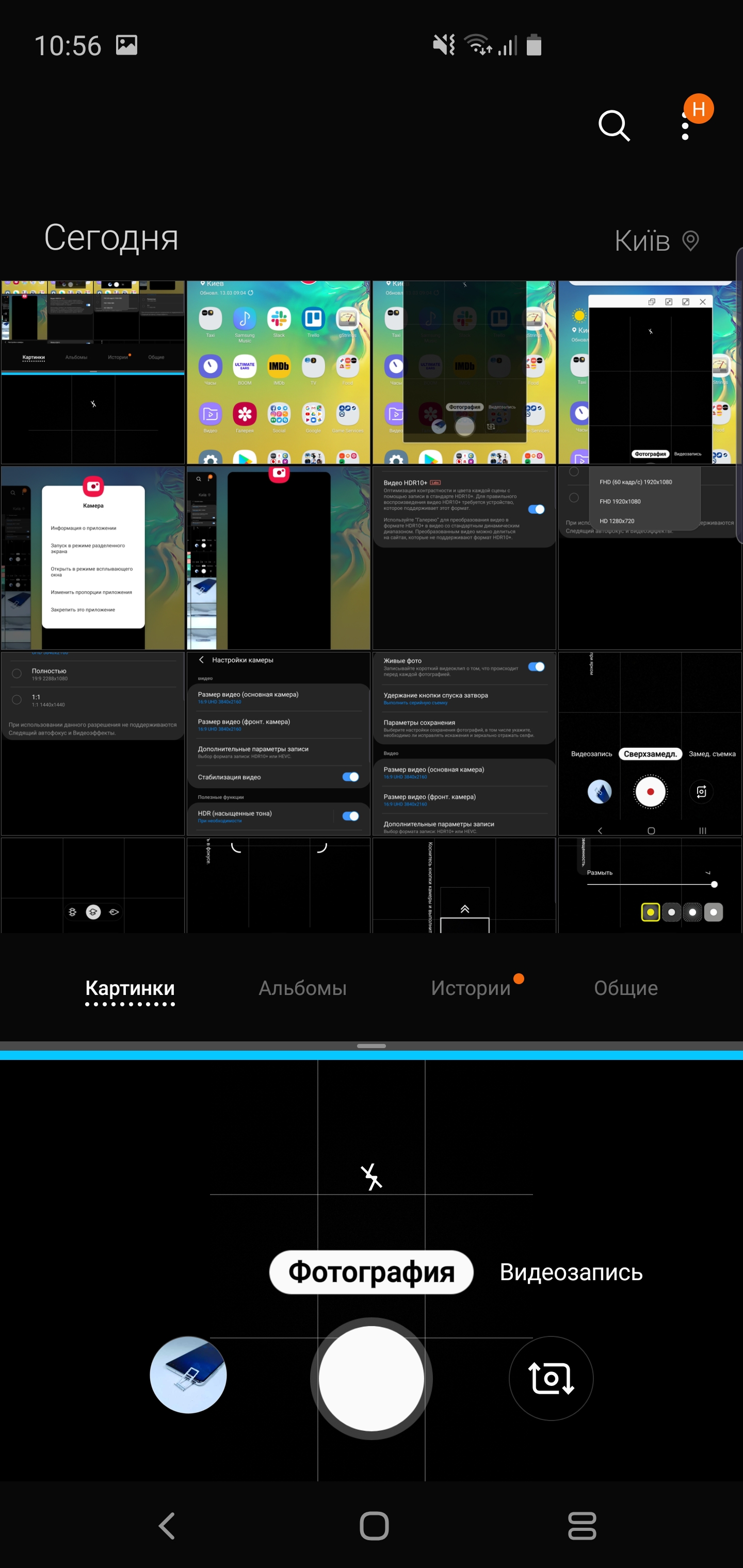 Aplikacja kamery nie zmieniła się znacznie, ono jest dość jasne i proste w użyciu. wszystkie główne tryby rzełaczają się poziomowymi swypemi, aby przejść do „Sheroki format” lub zoom, istnieje odpowiedni przełącznik trójpozycyjny. Jest też w pełni manualny „Profesjonalny tryb” Super Slow motion, fokus (z rozmytym tłem) giperlaps. Jesto wirtualny asystent do fotografowania scen z funkcją automatycznego wykrywania i identyfikacji problemów w ramce: