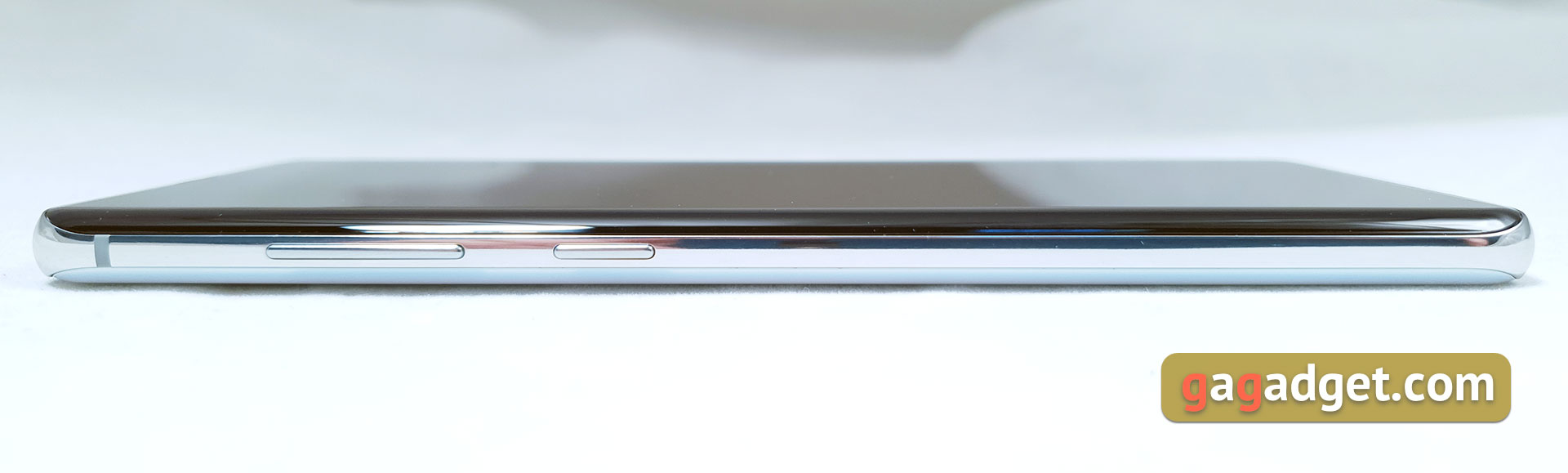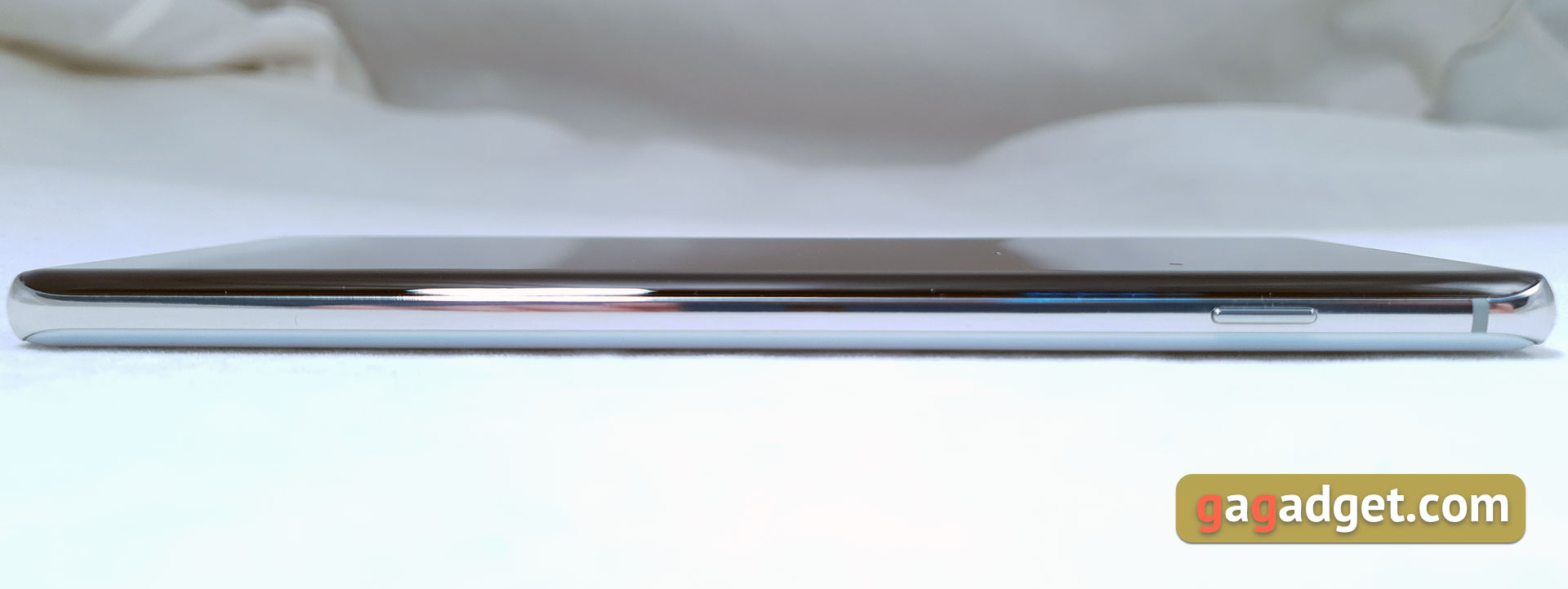 Wyświetlach i tylny panel płynnie przekształcają się w metalową ramkę, która zwęża się na bocznych końcach. Przycisk zasilania znajduje się po prawej stronie, w górnej części smartfonu. Ta pozycja jest wygodna przy użyciu smartfona prawą ręką: kciuk kładzie się akurat bezpośrednio na niej. Przy korzystaniu z lewej ręki -już nie tak wygodne: konieczne jest wyciąganie palca. Pierwsze kilka dni to było niezwykłe:
