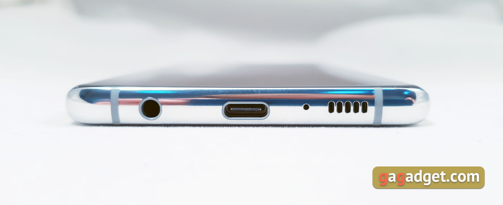 Na dole - USB typu-C, zewnętrzny głośnik, mikrofon i 3,5 mm gniazdo słuchawkowe. Bardzo miło, że firma nie spieszy się, aby go usunąć, tak jak to zrobiło większość producentów w ich flagowcach: