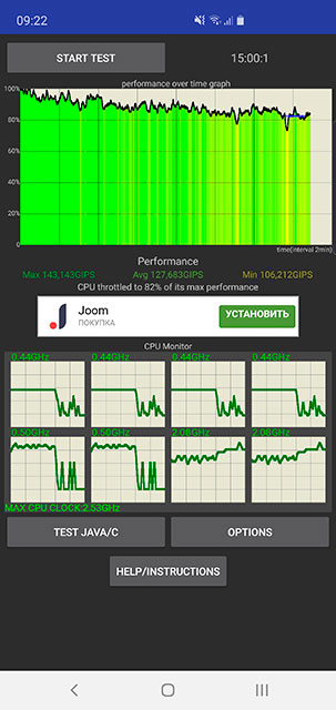 Krytycznych problemów z przegrzaniem w smartfonie nie ma. Przy długim maksymylnym obciążeniu w Throttling Test, występuję trotling i wydajność spada do 82%, choć w rzeczywistych zadaniach takie problemy nie są zauważalne. żadnych zwolnień w grach lub przegrzania obudowy: