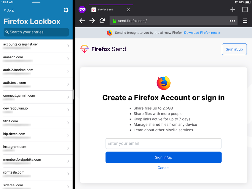 Nowa wersja jest bardziej jak pulpit. Przede wszystkim, jest to tryb split-screen. Oznacza to, że w jednej połowie można otworzyć przeglądarkę, w drugiej - inną aplikację. Na przykład,jakąś stronę, a dla wejścia na nią  przeciągnąć login i hasło z aplikacji Firefox Lockbox.