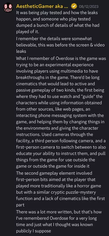 Pod koniec 2022 roku do sieci wyciekł materiał z tajemniczej gry Overdose, rzekomo autorstwa Kojimy. Dusk Golem wyjaśnił, że wyciek był możliwy dzięki temu, że deweloperzy przeprowadzali pierwsze testy OD i zbierali opinie graczy na jej temat. W rezultacie potwierdzono, że OD to rzeczywiście Overdose.