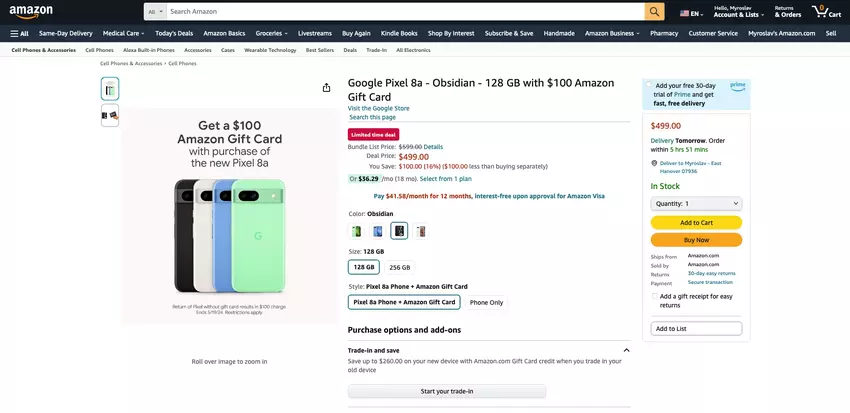Oferta ograniczona czasowo: Amazon daje certyfikat o wartości 100 USD przy zakupie Google Pixel 8a
