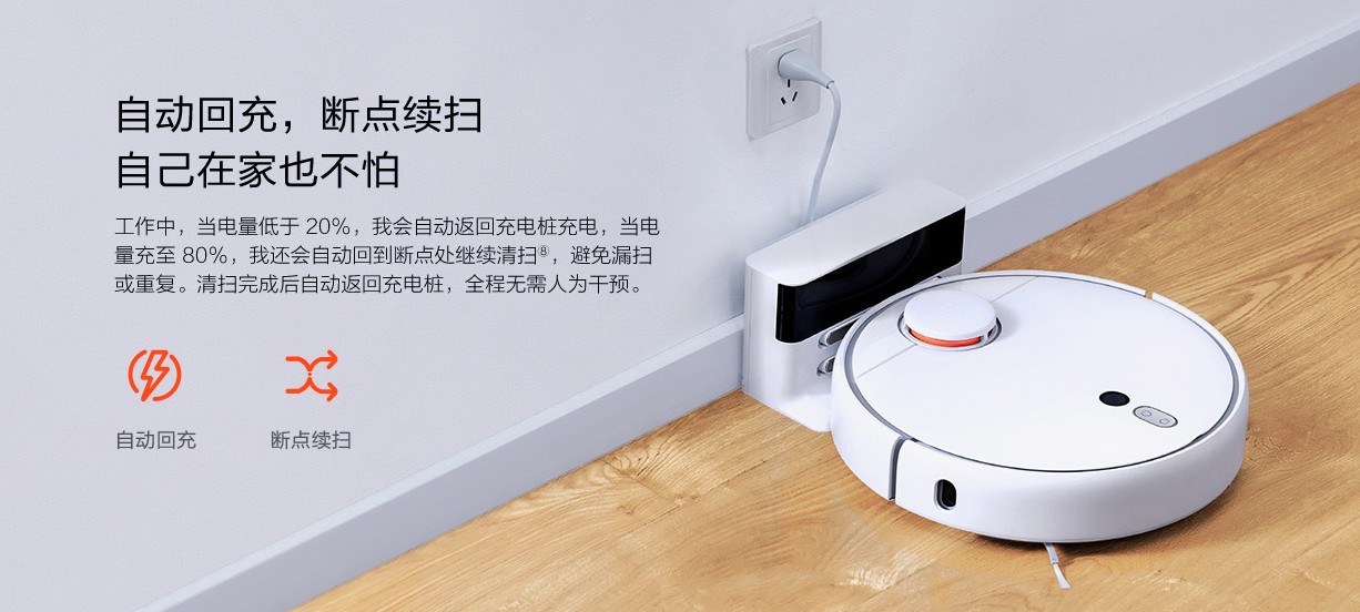 Jeżeli przy sprzątaniu poziom baterii spadnie do 20%, robot-odkurzacz sam powędruje do stacji dokującej, naładuje się do 80%, wróci do miejsca przerwania sprzątania i będzie kontynuował. W aplikacji na smartfonie, można dostosować rozkład sprzątania, tworzyć wirtualne ściany i zakazane strefy, gdzie nie może wjeżdżać Mi Robot Vacuum Cleaner 1S.