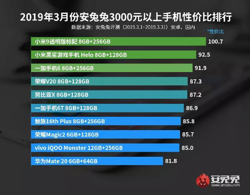 W AnTuTu po  top 10 najpotężniejszych Android smartphone w marcu opublikowały ranking najlepszych  Android urządzeń pod względem stosunku ceny i wydajności. Aby nie mieszać „utwardzone” model ze skromnymi budżetowcami, najlepszych określali w różnych kategoriach cenowych.