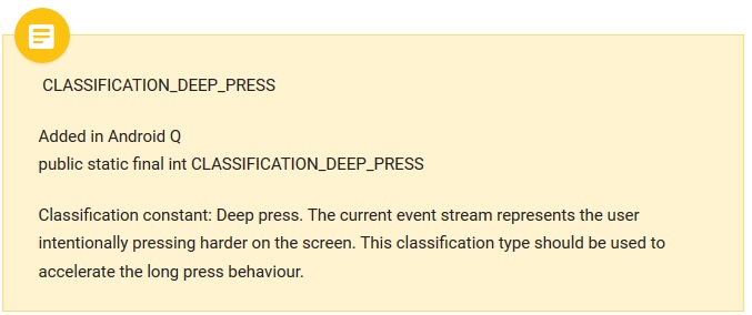 W drugiej wersji beta Android Q znaleźli odniesienia do nowej funkcji - Deep Press. Jak i 3D Touch, pozwala ona na określenie intensywności naciśnięcia ekranu. Oznacza to, że zamiast tego żeby dłóżej trzymać palec na wyświetlaczu poprostu trzeba mocniej nacisnąć na niego.