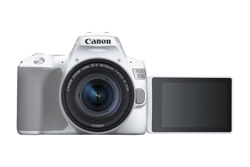 Canon EOS 250D z 24,1 megapikseli rozdzielczości ma łatwy w obsłudze interfejs z podpowiedzi i matrycą APS-C. Wyposażony w Procesor DIGIC 8. Z pomocą kamery można filmować wideo w 4K z prędkością 24 klatki na sekundę. Technologia Dual Pixel CMOS AF zrobi kontrolę ostrości znacznie wygodniejszą.