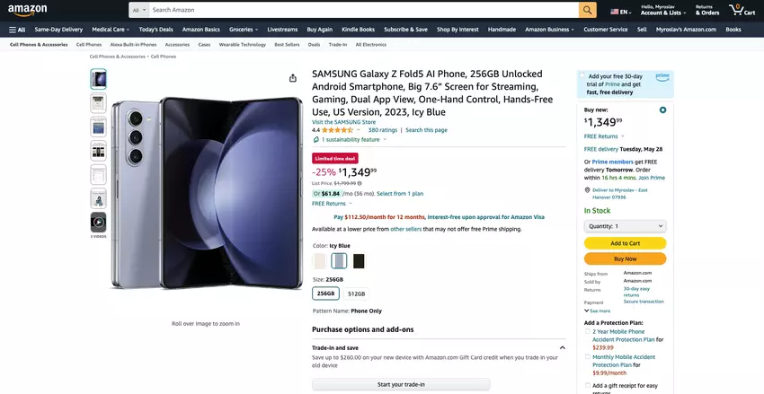 Składany smartfon Samsung Galaxy Fold 5 można kupić na Amazon z rabatem w wysokości 450 USD