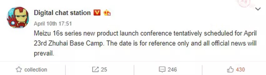 CEO Meizu kilka miesięcy temu wypowiedział że ich nowy flagowy zaprezentują w kwietniu. Oficjalną datę komunikatu jeszcze nie ogłosili , ale ze względu na chińskiego insidera jest już znana.