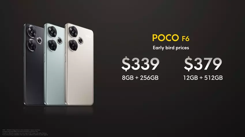 - POCO F6 8/512GB - 429 USD (dla pierwszych nabywców 379 USD)