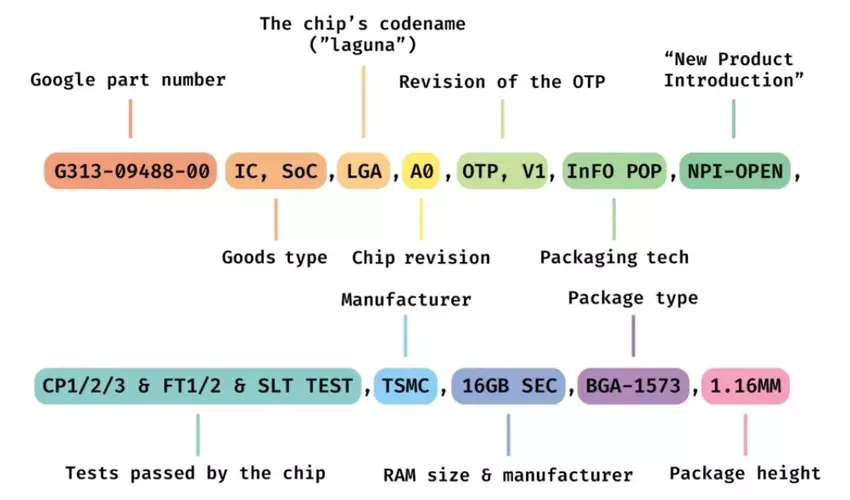Ten manifest wysyłkowy wspomina o technologii InFO POP firmy TSMC, a także o nazwie kodowej Google dla Tensor G5 - LGA (Laguna Beach). Dokument wspomina również o wsparciu dla 16 GB pamięci RAM od Samsunga. Według doniesień, wspomniany pakiet pochodzi od Tessolve Semiconductor, indyjskiej firmy zajmującej się testowaniem półprzewodników. Uważa się, że Tessolve spełnia niektóre funkcje wcześniej wykonywane przez Samsunga. Dodatkowe szczegóły dotyczące chipu nie są jeszcze znane.