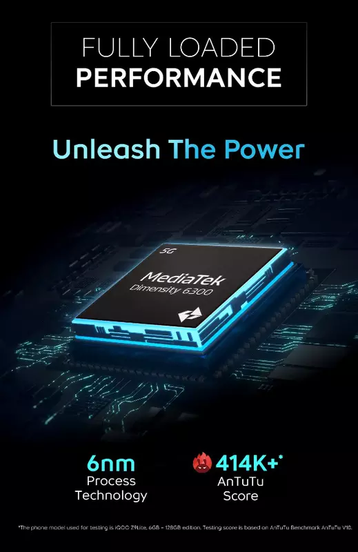 Nowość będzie działać na procesorze MediaTek Dimensity 6300 w połączeniu z 6 GB pamięci RAM i 128 GB pamięci masowej. Nawiasem mówiąc, w teście wydajności AnTuTu smartfon uzyskał ponad 414 000 punktów.