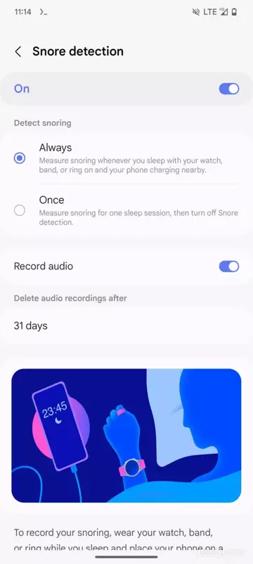 Inne funkcje zdrowotne obejmują śledzenie i przewidywanie cyklu kobiety, a także wykrywanie chrapania, chociaż to ostatnie będzie wymagało smartfona Galaxy jako urządzenia towarzyszącego. Działa to w taki sam sposób, jak w przypadku Galaxy Watch.