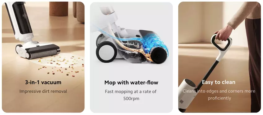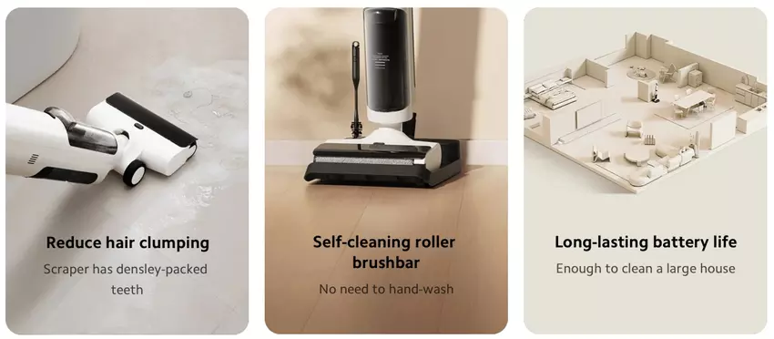 Odkurzacz otrzymał funkcję czyszczenia na mokro. Urządzenie wyposażono w szczotkę, która obraca się z prędkością 500 obrotów na minutę. Xiaomi Truclean W20 Wet Dry Vacuum posiada tryb, który zapobiega kręceniu się włosów na szczotce. Po czyszczeniu nowość może automatycznie oczyścić się z kurzu.