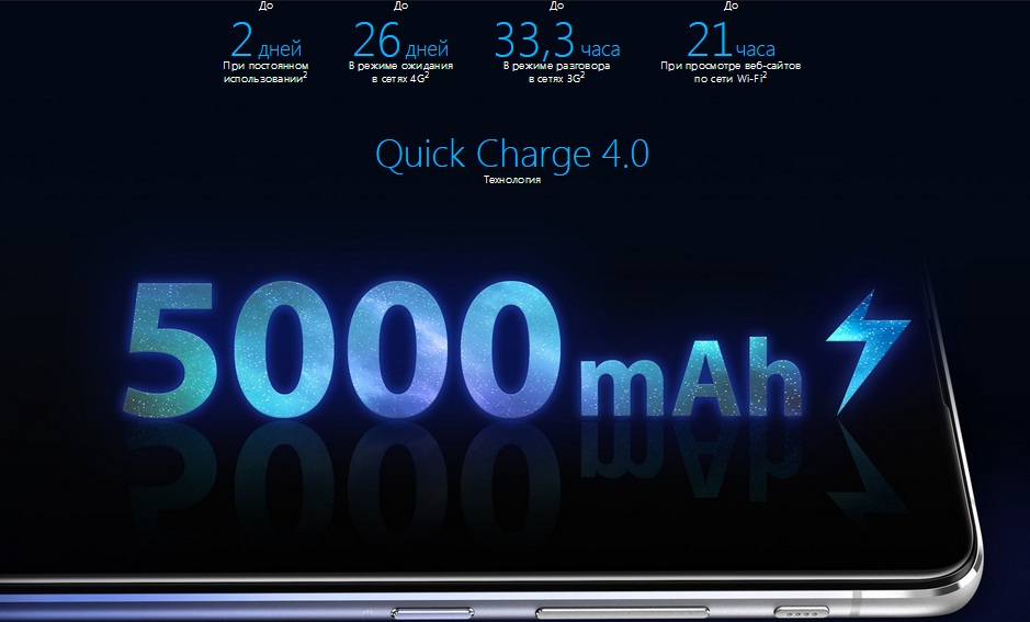 Pojemność baterii jest całkiem przyzwoita - 5000 mAh. Dodatkowo istnieje wsparcie dla szybkiego ładowania o mocy 18 W (w zestawie adapter).