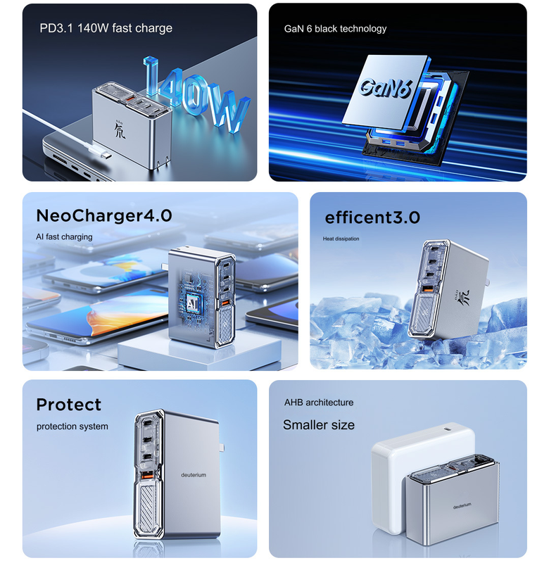 Mowa o ładowarce GaN Red Magic DAO. Nowość otrzymała półprzezroczystą konstrukcję i cztery porty: trzy USB-C i jeden USB-A. Ładowarka obsługuje łączną moc wyjściową 140 W, a także protokół PD 3. Nowość posiada różne poziomy ochrony. Za pomocą Red Magic DAO można ładować smartfony, laptopy, konsole do gier i inne urządzenia.