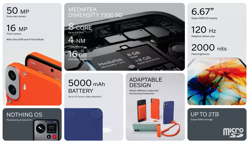 Nic nie zaprezentowało CMF Phone 1 ze zdejmowaną tylną obudową, dodatkowymi akcesoriami, układem MediaTek Dimensity 7300 i ekranem 120 Hz za 239 euro