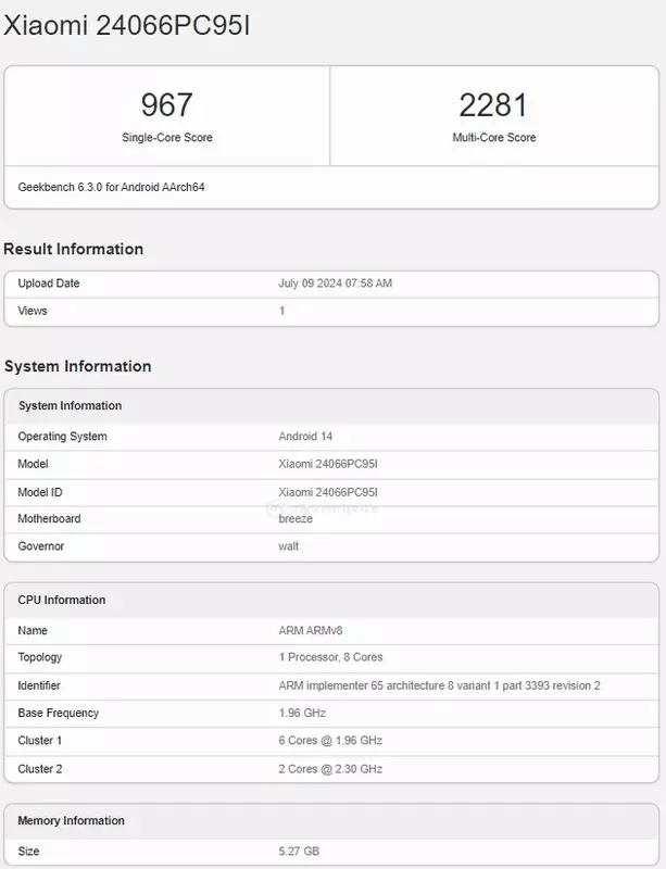 POCO M6 Plus 5G został wcześniej zauważony na liście certyfikacyjnej Google Play, gdzie otrzymał numer modelu 24066PC95I. Teraz urządzenie o tym samym numerze pojawiło się w bazie danych Geekbench.