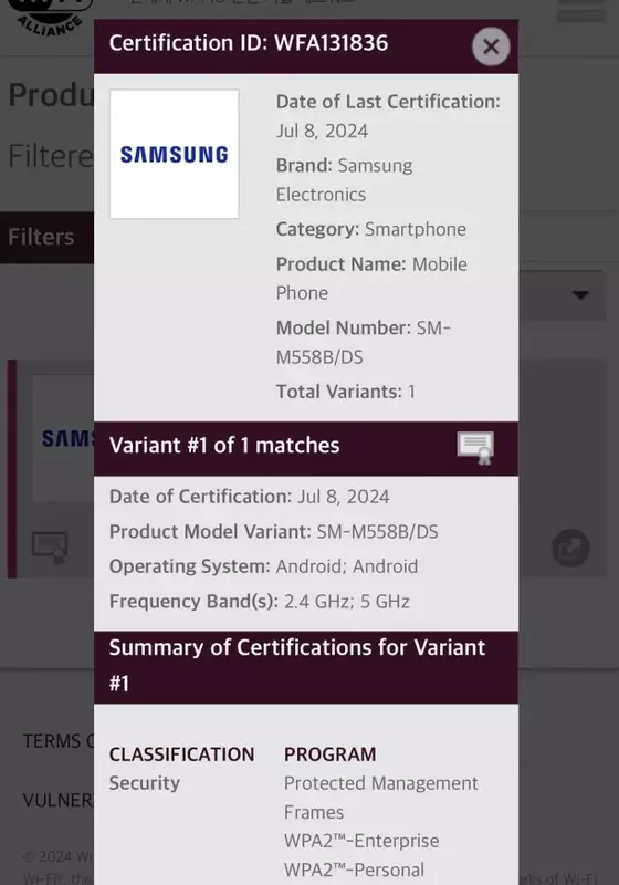 Samsung Galaxy M55s przeszedł certyfikację Wi-Fi Alliance i jest gotowy do premiery