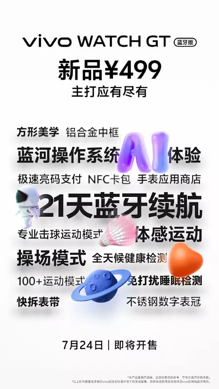 Firma Vivo zapowiedziała nową wersję swojego smartwatcha WATCH GT - Vivo WATCH GT Bluetooth Edition. Zostaną one zaprezentowane 24 lipca.
