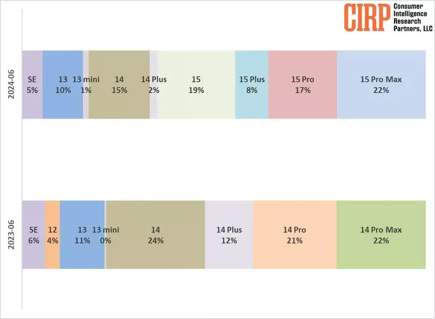 Jedynym wyjątkiem był iPhone 15 Pro Max, który odnotował lepsze wyniki sprzedaży, prawdopodobnie dzięki peryskopowej kamerze Tetraprism. iPhone 14 i iPhone 14 Plus stanowiły 17% sprzedaży smartfonów Apple w trzecim kwartale, co jest porównywalne ze sprzedażą iPhone'a 15 Pro (17%) i tylko nieznacznie za sprzedażą podstawowego iPhone'a 15 (19%).