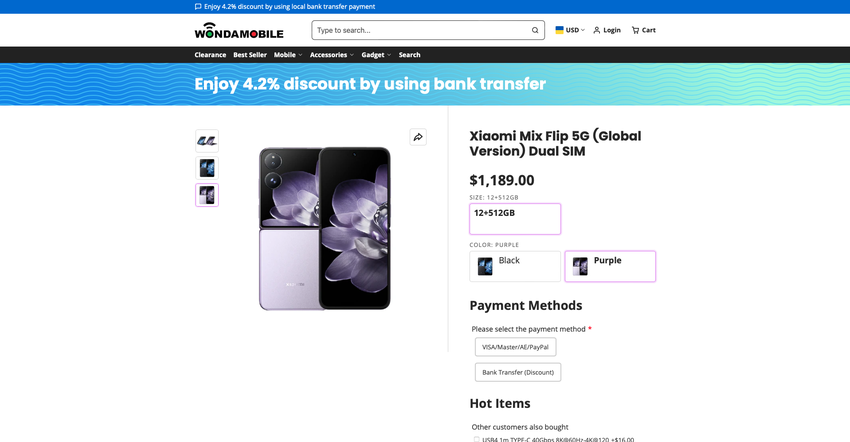 Globalna wersja Xiaomi MIX Flip pojawiła się na stronie internetowej sprzedawcy detalicznego Wonda Mobile z ceną 1189 USD