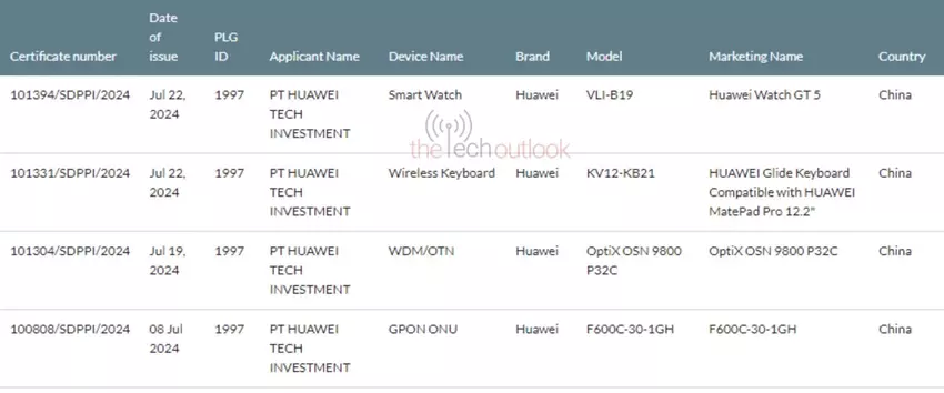 Mowa o modelu Huawei Watch GT 5. Nowość przeszła już różne certyfikaty. Według dokumentów gadżet ma numery modeli VLI-B19 i VLI-B29. Pierwsza wersja otrzyma obudowę 41 mm, a druga - 46 mm. Smartwatch powinien być wyposażony w ochronę przed wodą IP68.