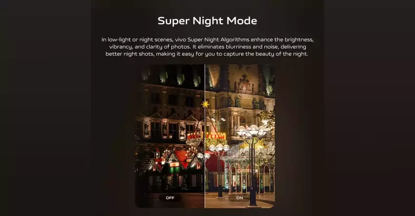 Telefon posiada aparat 13 MP + 0,08 MP z algorytmami Vivo Suter Night dla lepszego fotografowania w ciemności, a także przedni aparat 5 MP.