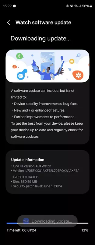 Mowa o Galaxy Watch 7 i Galaxy Watch Ultra. System dla urządzeń wyszedł z numerami kompilacji L310XXU1AXG2 i L705FXXU1AXFB. Firmware dla Galaxy Watch 7 waży 173MB, natomiast dla Galaxy Watch Ultra 330MB.