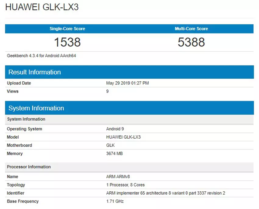 W bazie danych testu wydajności Geekbench zauważyliśmy urządzenie firmowe z numerem modelu GLK-LX3. Jak donosi kilka źródeł, mówimy o Nova 5i. Smartfon, zgodnie z wynikami testów (1538 i 5388 punktów), działa na znanym już 12-nm procesorze Kirin 710 z częstotliwością zegara 1,71 GHz. Chociaż istnieje niewielka szansa, że nowy produkt będzie nadal oferowany z nowym układem Kirin 720.